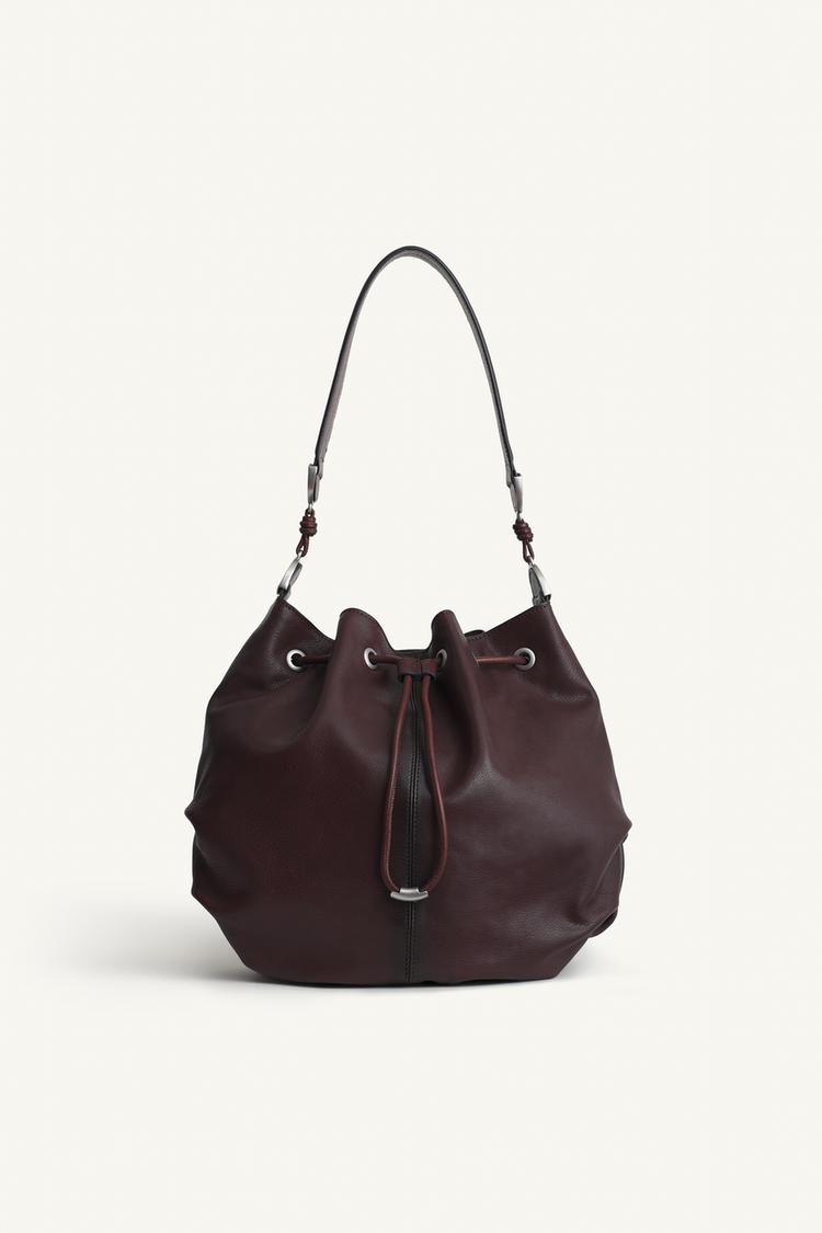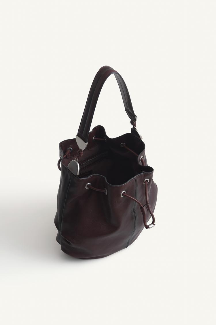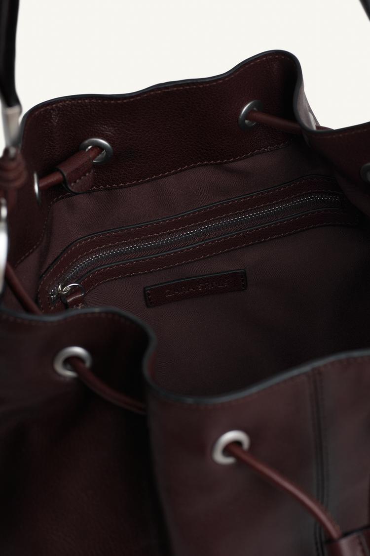 ZARA КОЖАНАЯ СУМКА ЧЕРЕЗ ПЛЕЧО МЕТАЛЛИЧЕСКИМИ ЛЮВЕРСАМИ, ШОКОЛАДНЫЙ