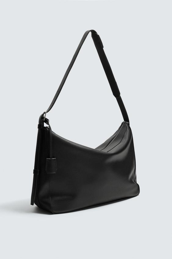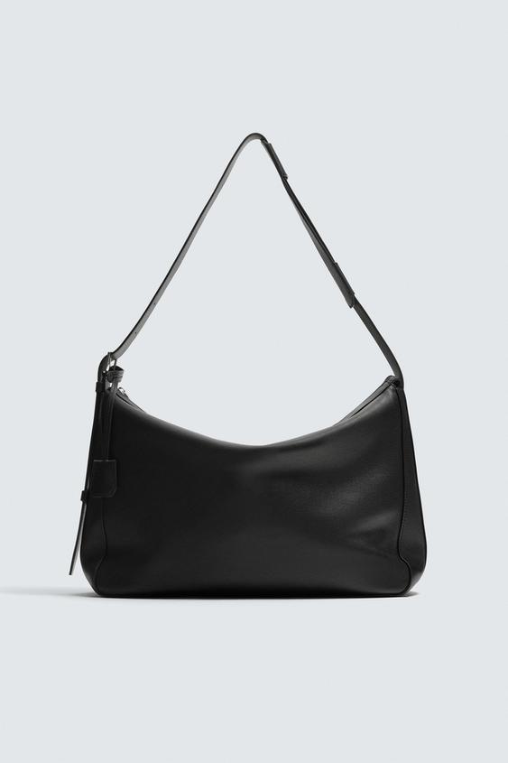 ZARA КОЖАНАЯ СУМКА, ЧЕРНЫЙ
