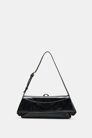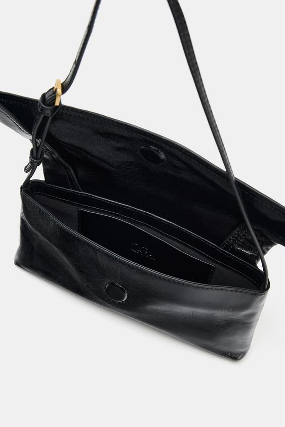 ZARA КОЖАНАЯ СУМКА С КЛАПАНОМ, ЧЕРНЫЙ