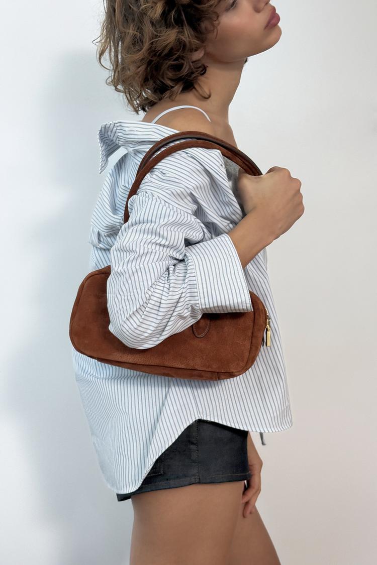 ZARA КОЖАНАЯ СУМКА С ПЛЕЧЕВЫМ РЕМНЕМ, ЧЕРЕПИЧНЫЙ