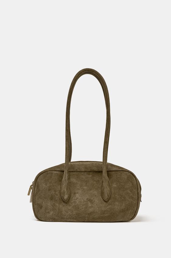 ZARA КОЖАНАЯ СУМКА С ПЛЕЧЕВЫМ РЕМНЕМ, ЗЕЛЕНЫЙ