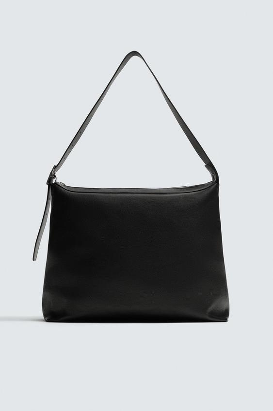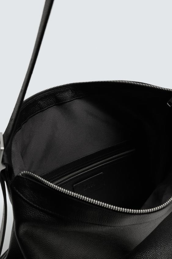 ZARA КОЖАНАЯ СУМКА-ШОПЕР, ЧЕРНЫЙ