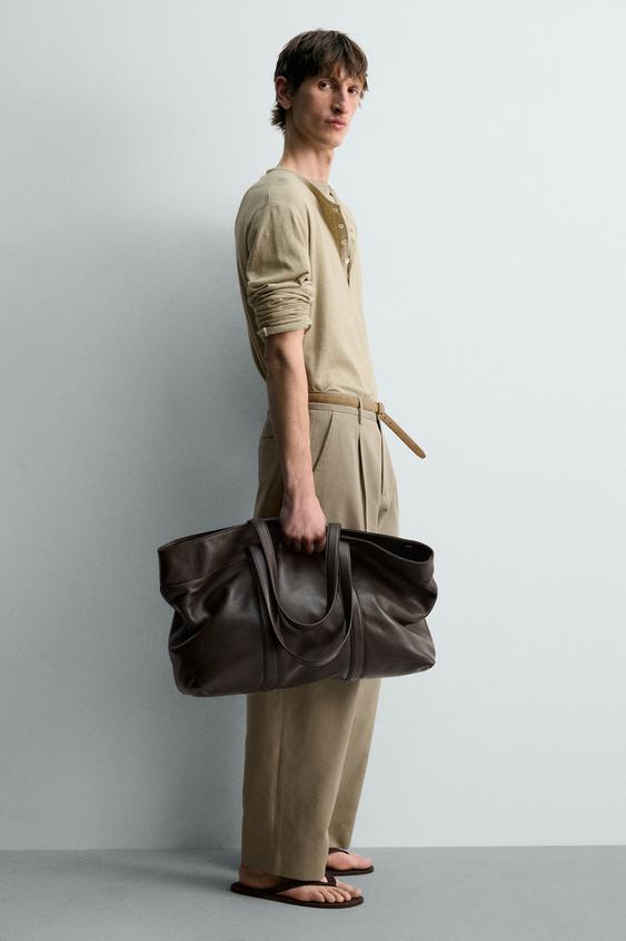 ZARA КОЖАНАЯ СУМКА-ШОПЕР, КОРИЧНЕВЫЙ