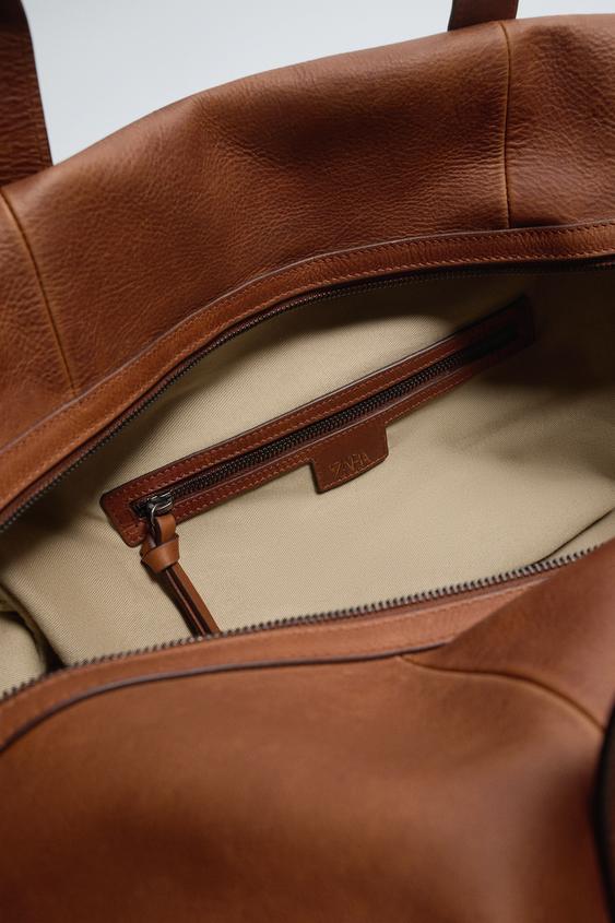 ZARA КОЖАНАЯ СУМКА XL, КОРИЧНЕВЫЙ