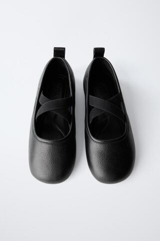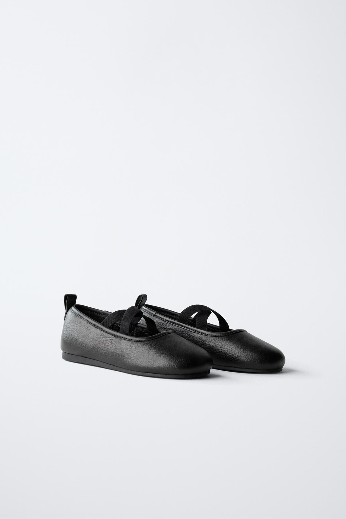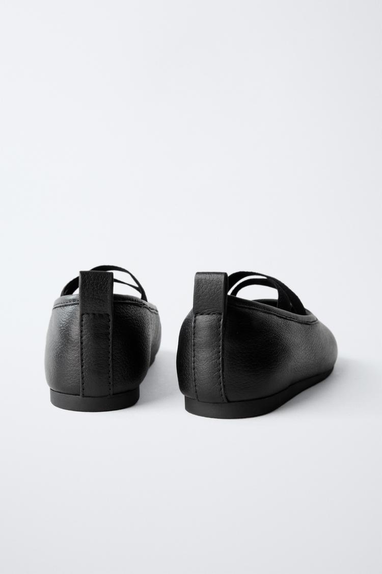 ZARA КОЖАНЫЕ БАЛЕТКИ, ЧЕРНЫЙ