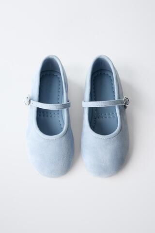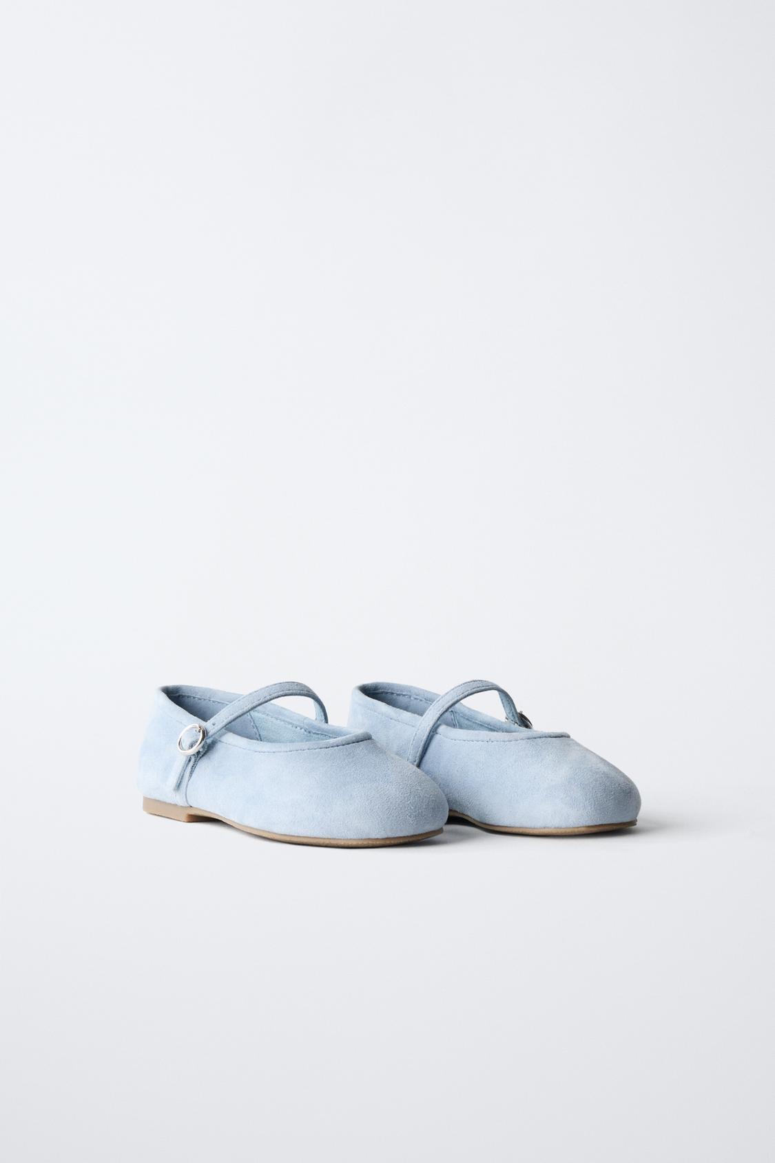 ZARA КОЖАНЫЕ БАЛЕТКИ, СИНИЙ