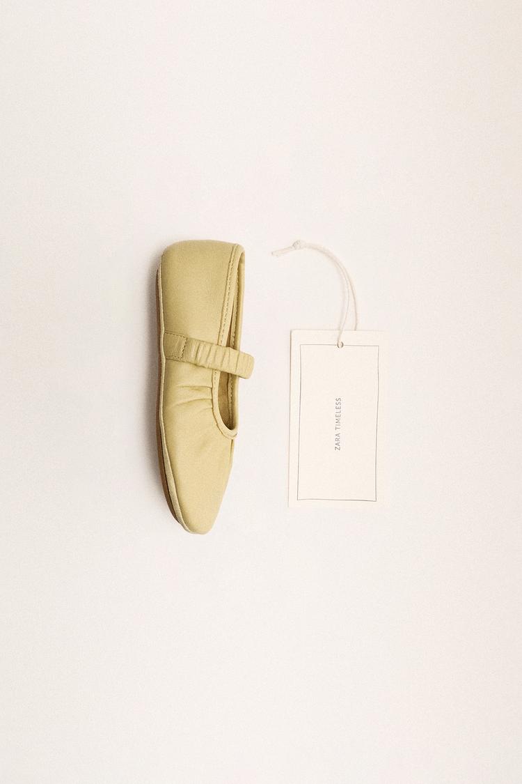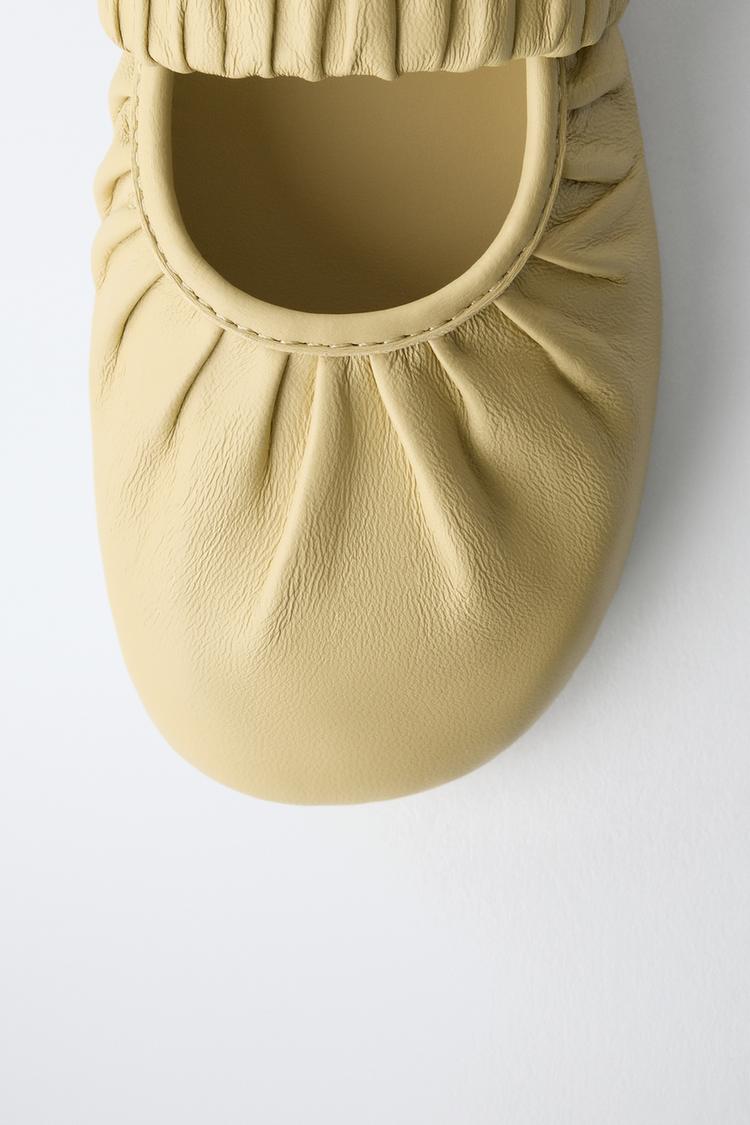 ZARA КОЖАНЫЕ БАЛЕТКИ, ЖЕЛТЫЙ