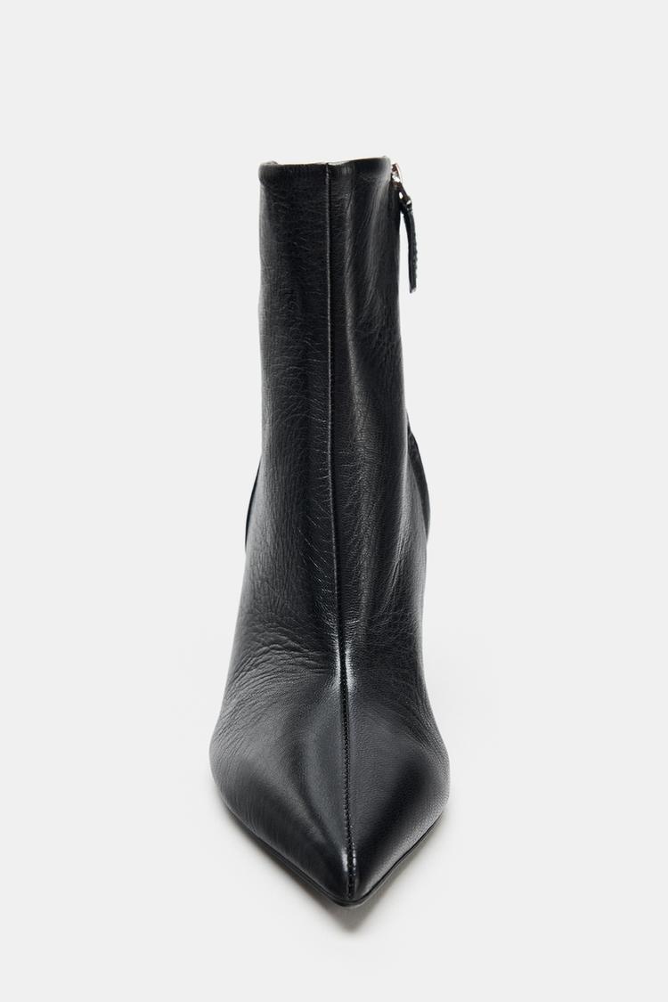 ZARA КОЖАНЫЕ БОТИЛЬОНЫ НА КАБЛУКЕ, ЧЕРНЫЙ