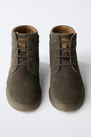 ZARA КОЖАНЫЕ БОТИНКИ, СЕРЫЙ