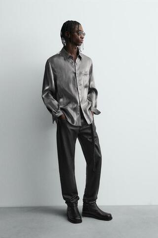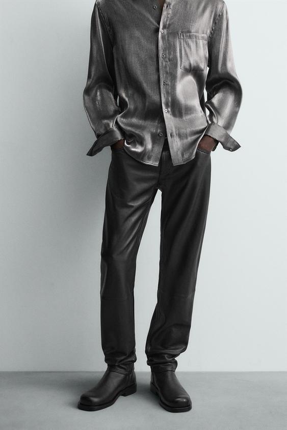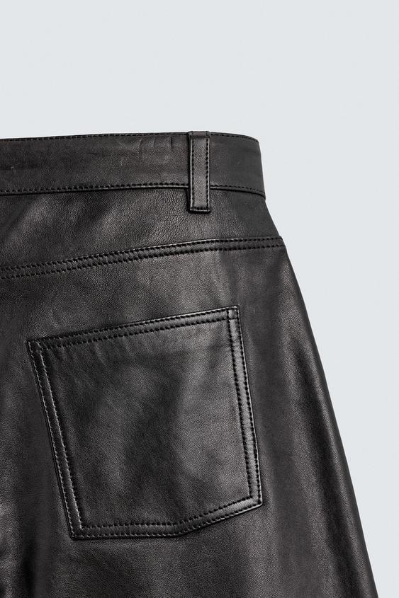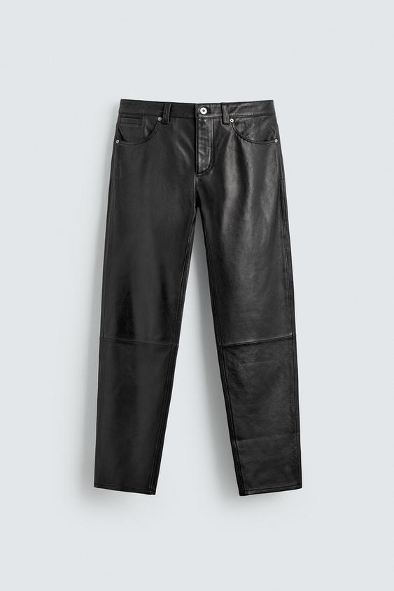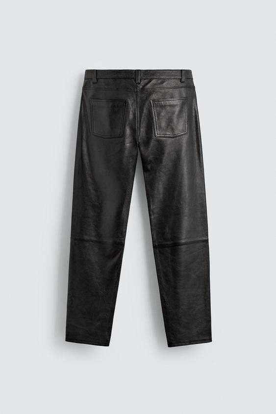 ZARA КОЖАНЫЕ БРЮКИ SLIM FIT, ЧЕРНЫЙ