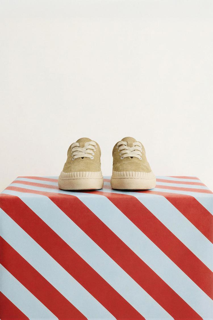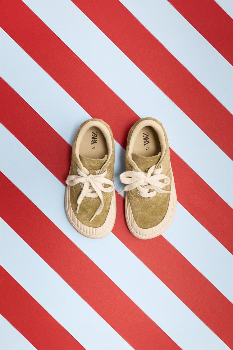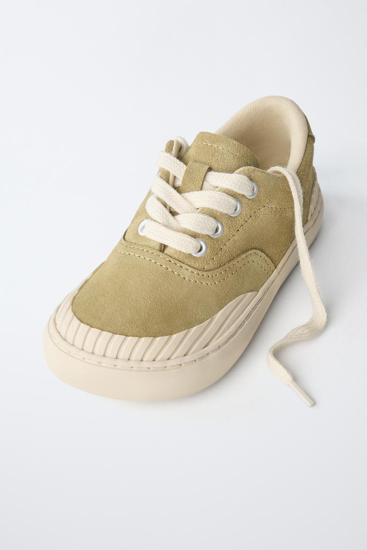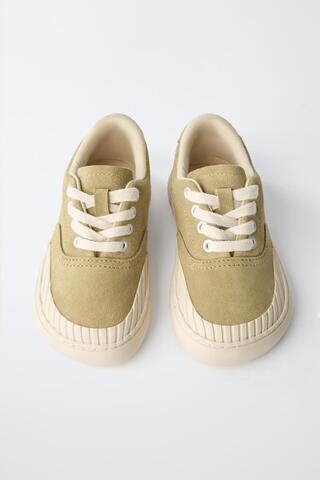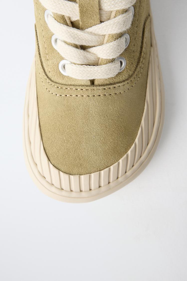 ZARA КОЖАНЫЕ КЕДЫ, ЗЕЛЕНЫЙ ХАКИ