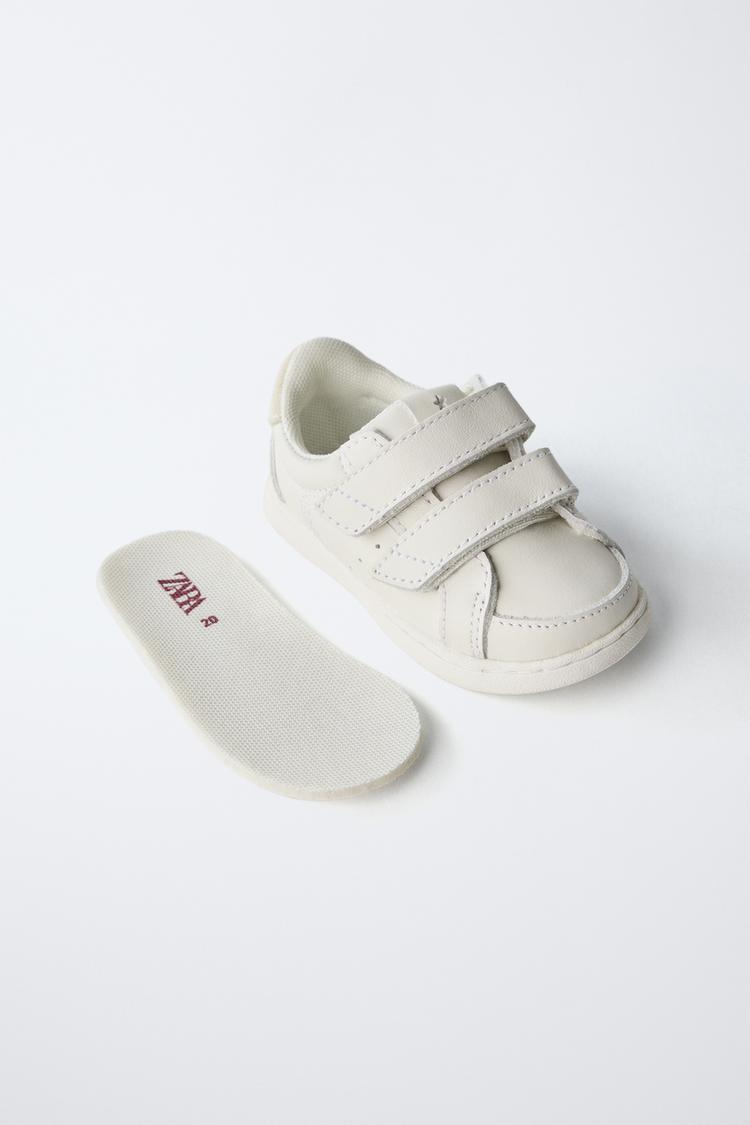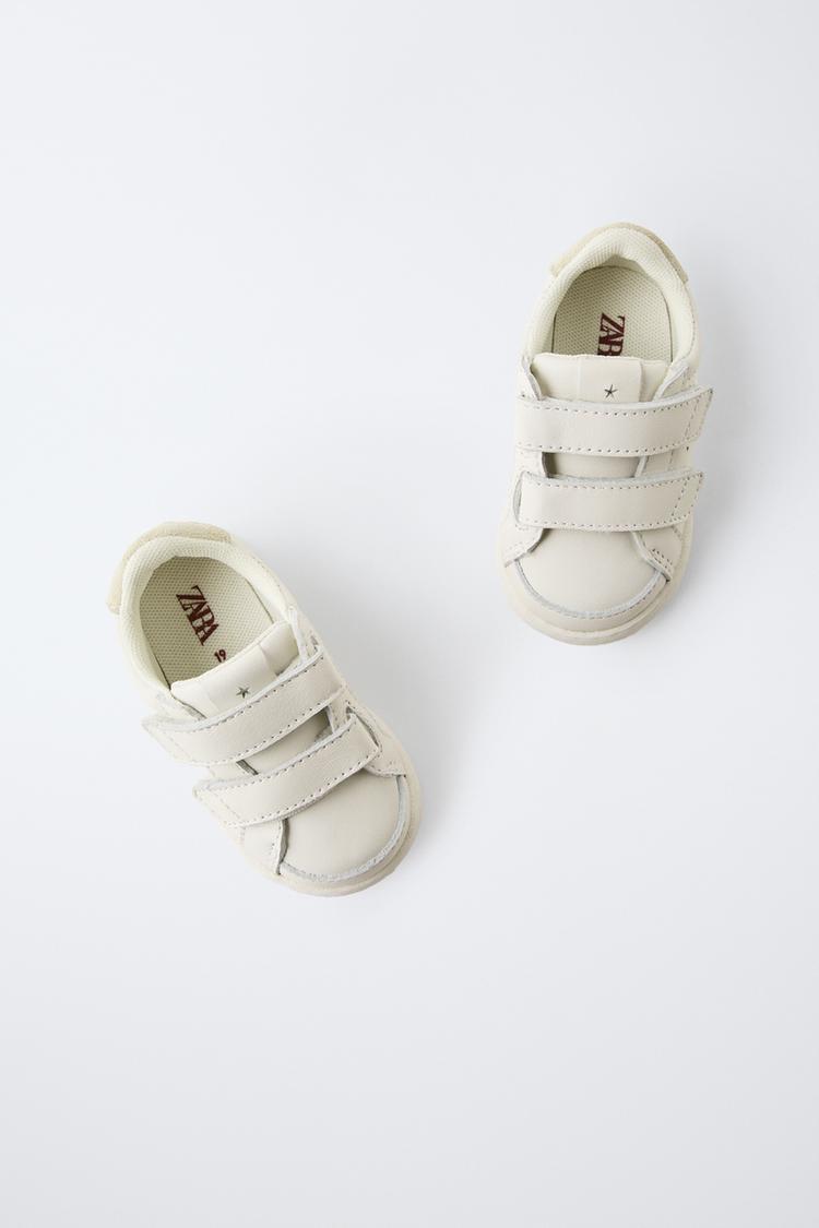 ZARA КОЖАНЫЕ КРОССОВКИ С РЕМЕШКАМИ, БЕЛЫЙ