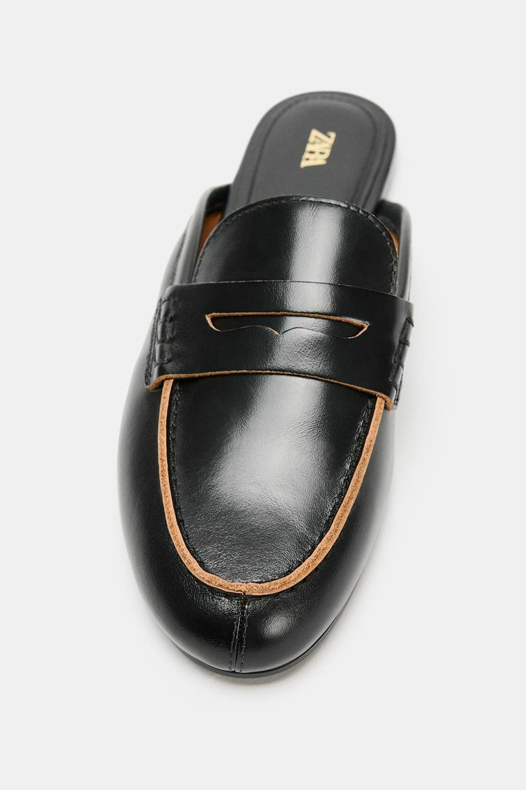 ZARA КОЖАНЫЕ ЛОФЕРЫ БЕЗ ЗАДНИКА, ЧЕРНЫЙ