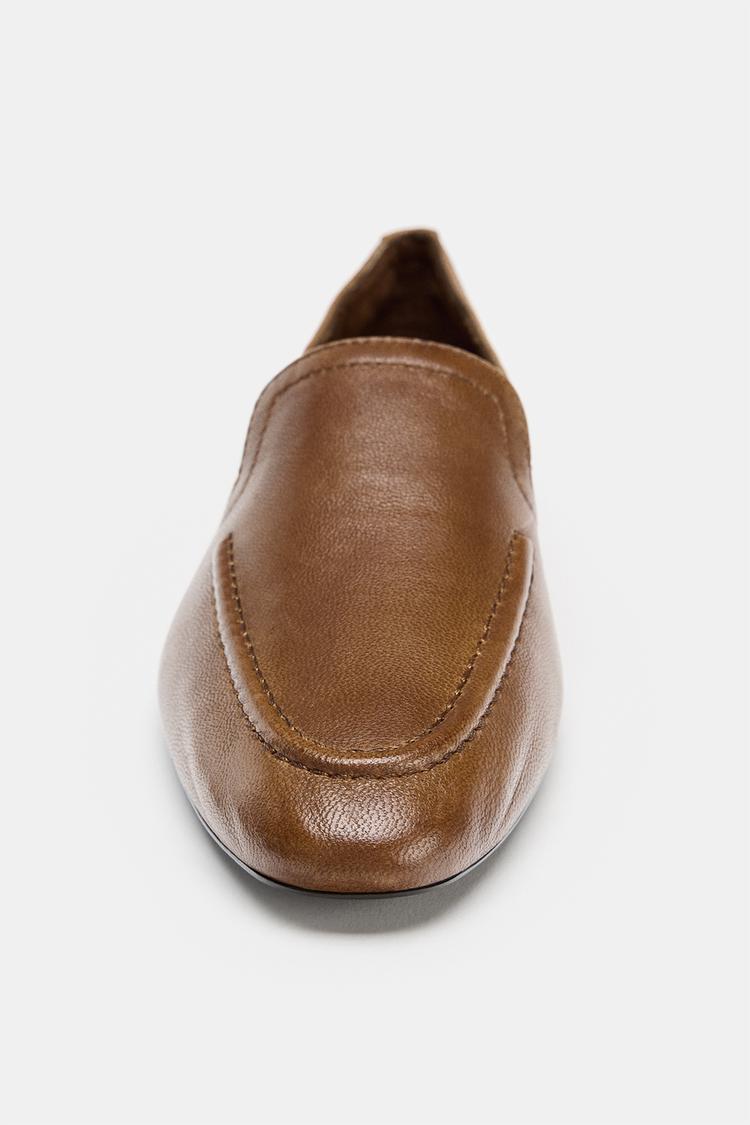 ZARA КОЖАНЫЕ ЛОФЕРЫ С ВЫСОКИМ РАНТОМ, КОРИЧНЕВЫЙ