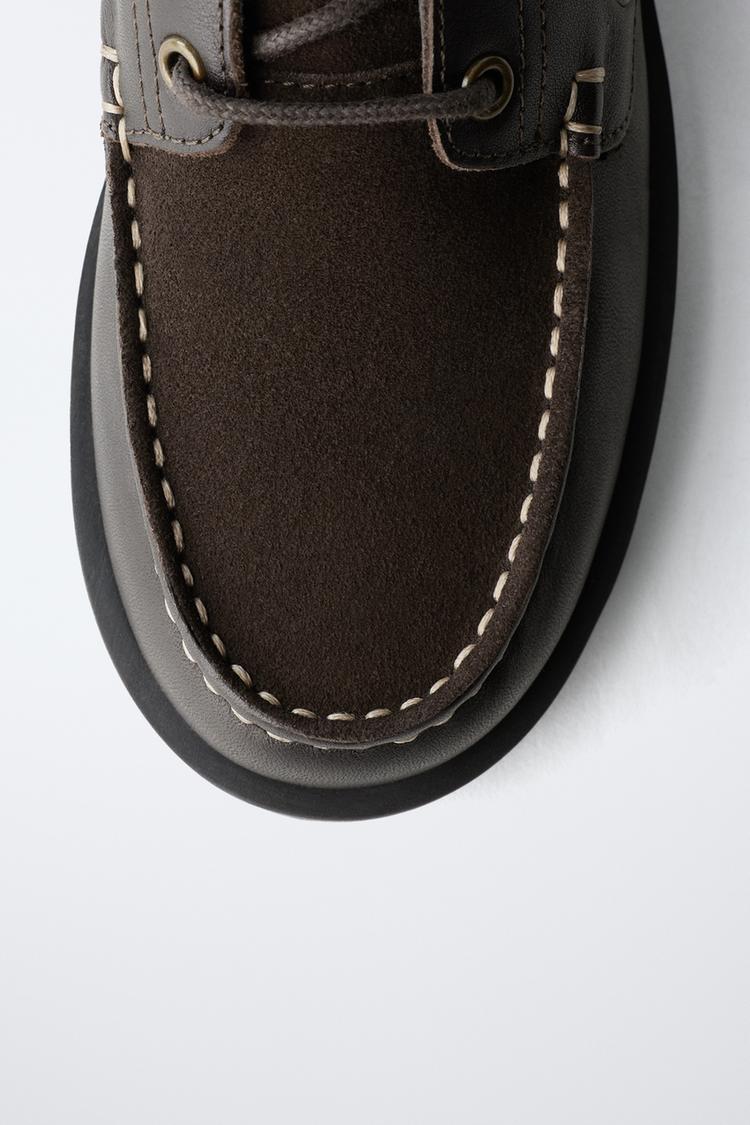 ZARA КОЖАНЫЕ МОКАСИНЫ, КОРИЧНЕВЫЙ
