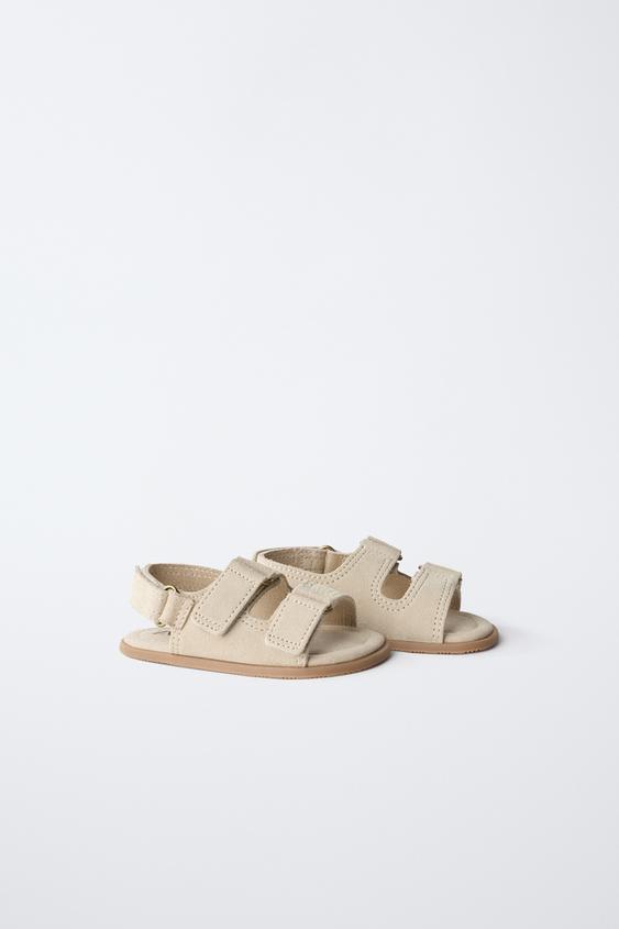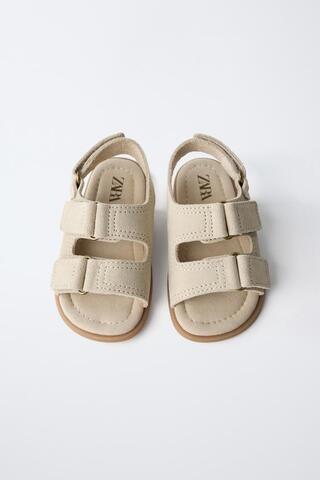 ZARA КОЖАНЫЕ САНДАЛИИ BAREFOOT, ПЕСОЧНО-КОРИЧНЕВЫЙ