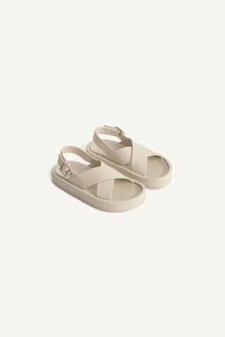 ZARA КОЖАНЫЕ САНДАЛИИ, БЕЛЫЙ