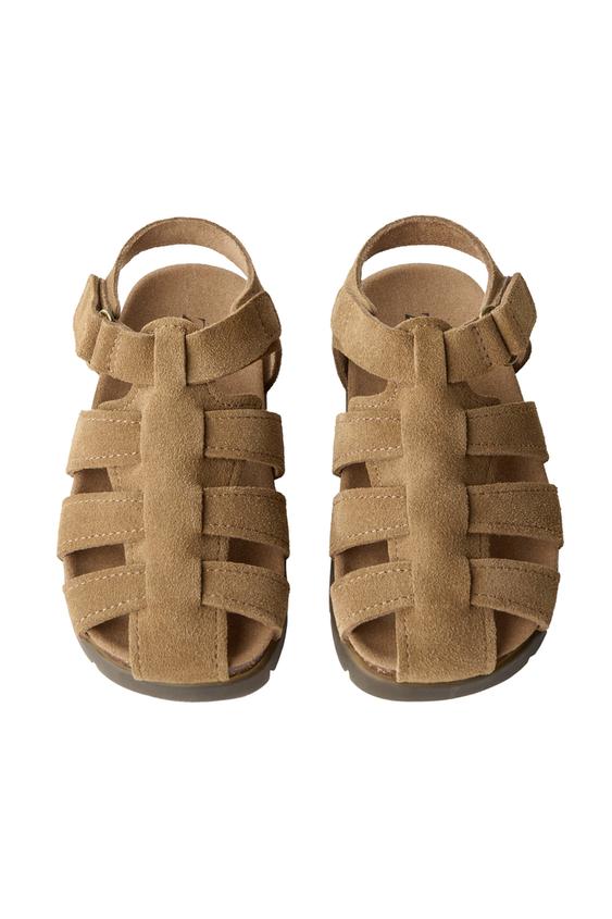 Сандалии из 100% воловьей кожи с высокой гибкостью. Закругленный, широкий и функциональный носок для свободного движения пальцев. Регулируемая застежка на липучке сбоку для лучшей фиксации и безопасности. Гибкая резиновая подошва с перепадом 0.