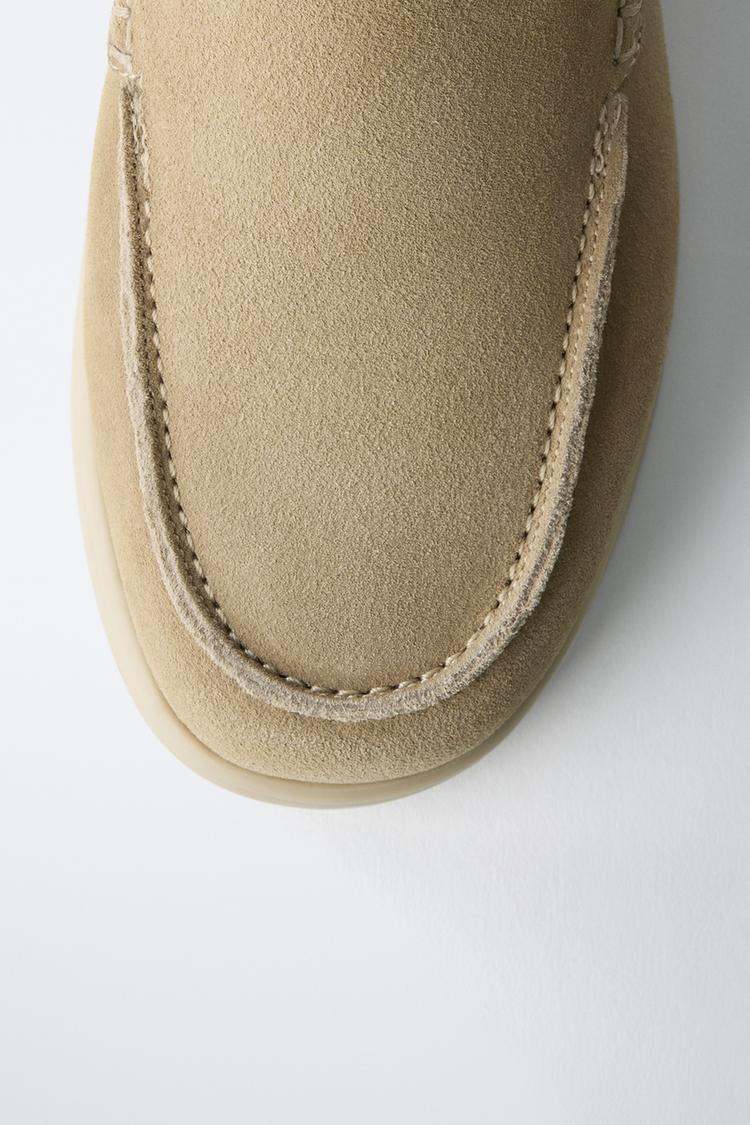 ZARA КОЖАНЫЕ ТОПСАЙДЕРЫ, ПЕСОЧНО-КОРИЧНЕВЫЙ