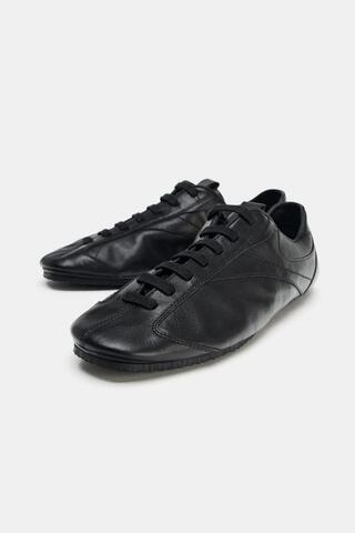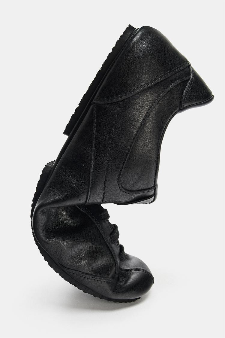 ZARA КОЖАНЫЕ ТУФЛИ-ДЕРБИ, ЧЕРНЫЙ