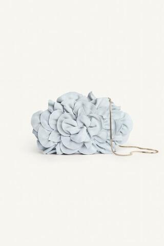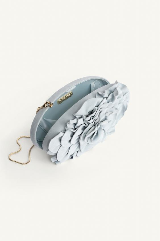 ZARA КОЖАНЫЙ КЛАТЧ С ЦВЕТОЧНЫМ РИСУНКОМ - LIMITED EDITION, СИНИЙ