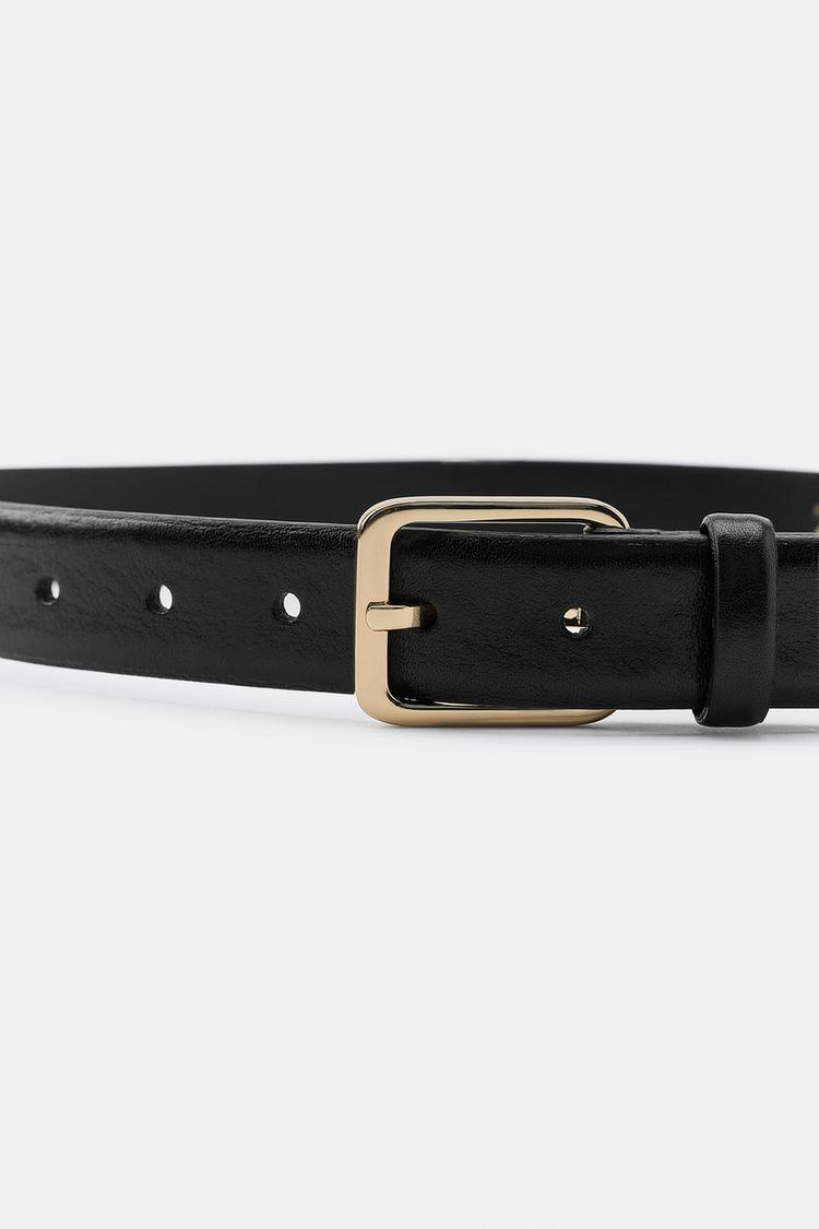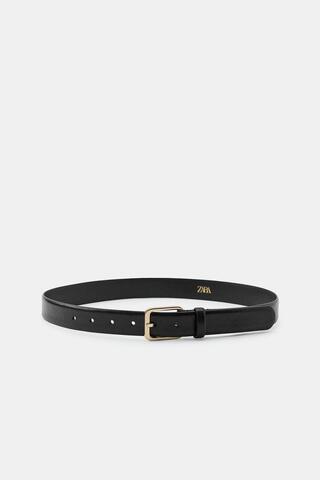 ZARA КОЖАНЫЙ РЕМЕНЬ 100% С КВАДРАТНОЙ ПРЯЖКОЙ, ЧЕРНЫЙ