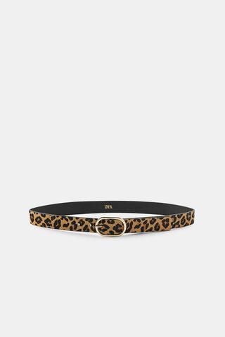 ZARA КОЖАНЫЙ РЕМЕНЬ С АНИМАЛИСТИЧЕСКИМ ПРИНТОМ, ЛЕОПАРДОВЫЙ
