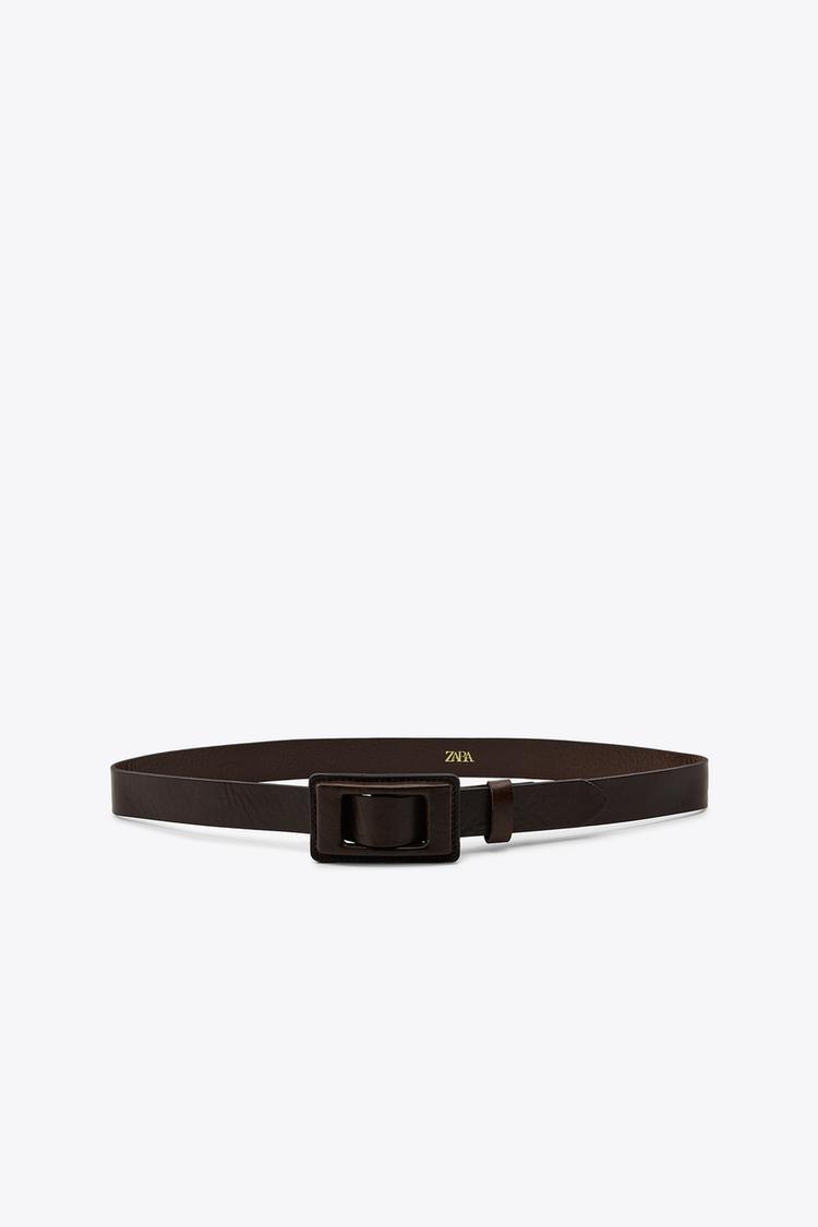 ZARA КОЖАНЫЙ РЕМЕНЬ С ОБТЯНУТОЙ ПРЯЖКОЙ, КОРИЧНЕВЫЙ
