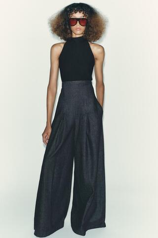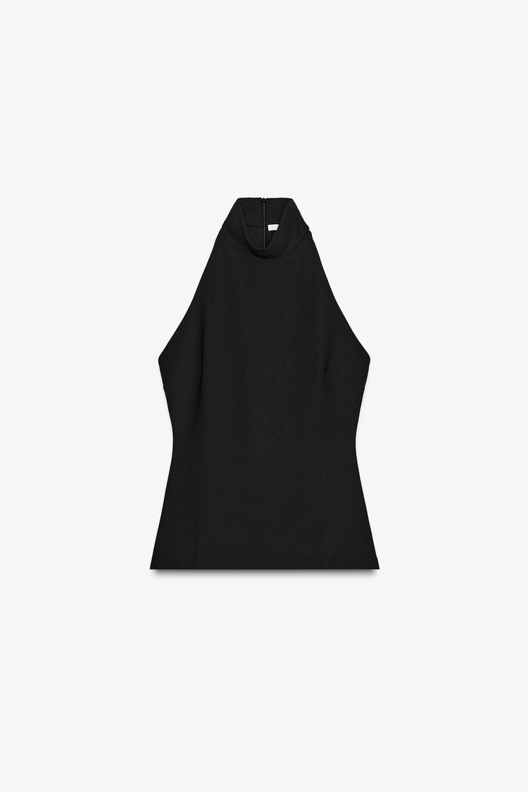 ZARA КРЕПОВЫЙ ТОП С ГОРЛОВИНОЙ ХАЛТЕР, ЧЕРНЫЙ