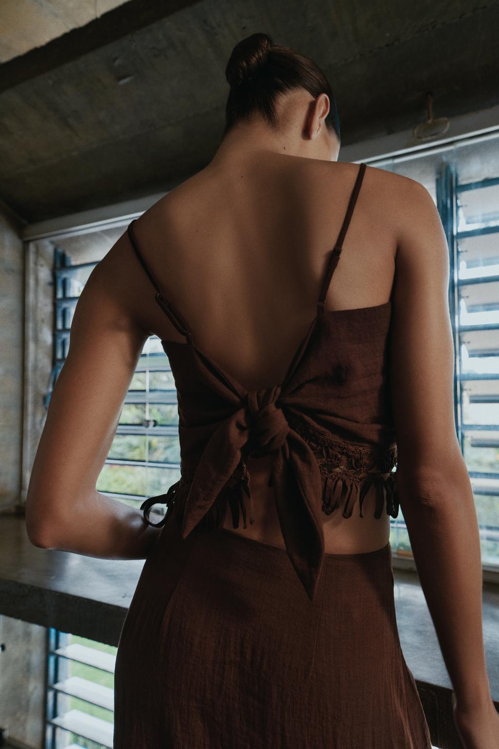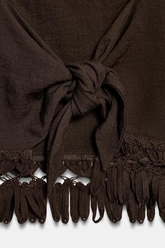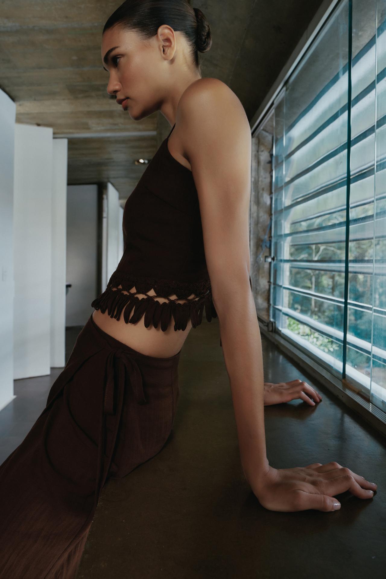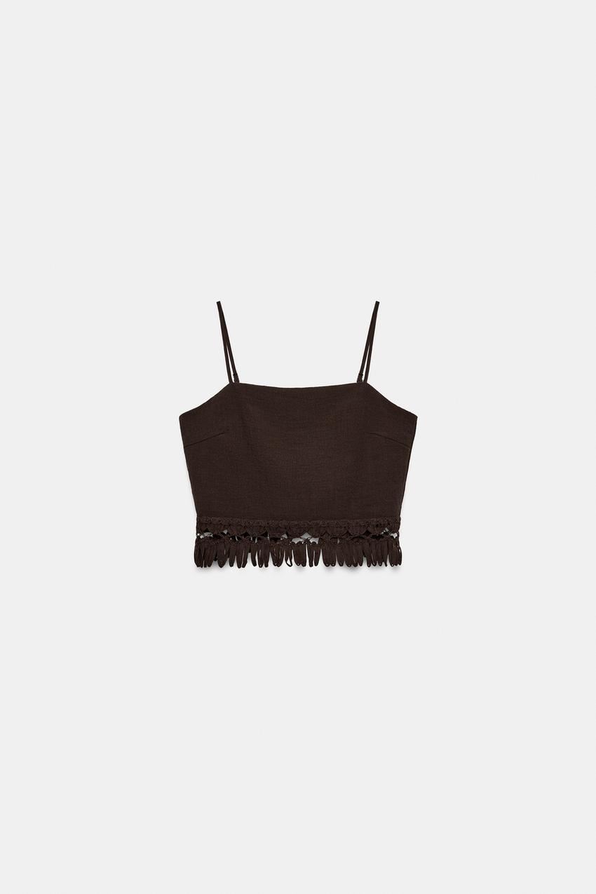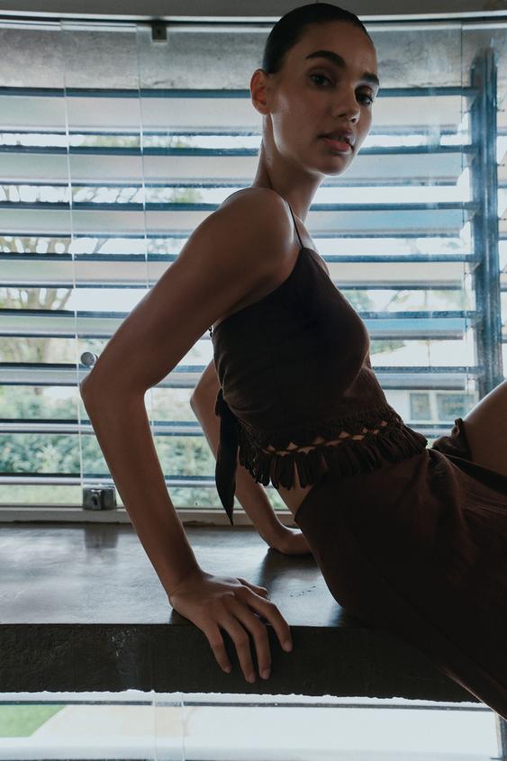 ZARA КРОП-ТОП С БАХРОМОЙ, КОРИЧНЕВЫЙ