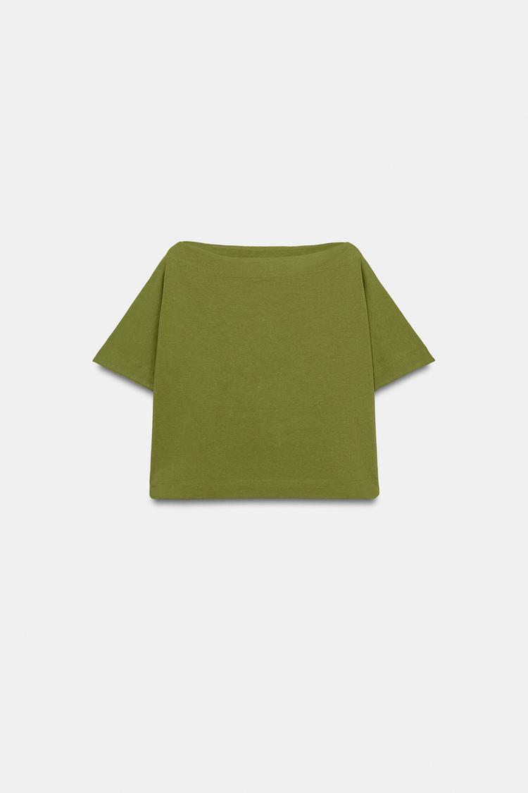 ZARA КРОП-ТОП С ЭФФЕКТОМ НАКИДКИ, ОЛИВКОВЫЙ