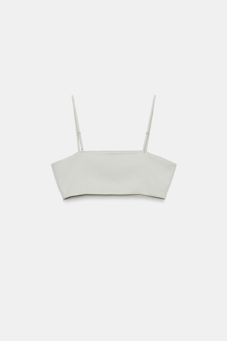 Топ с квадратным вырезом и регулируемыми тонкими бретелями. Пайетки спереди. Подкладка в тон. Потайная молния в боковом шве.