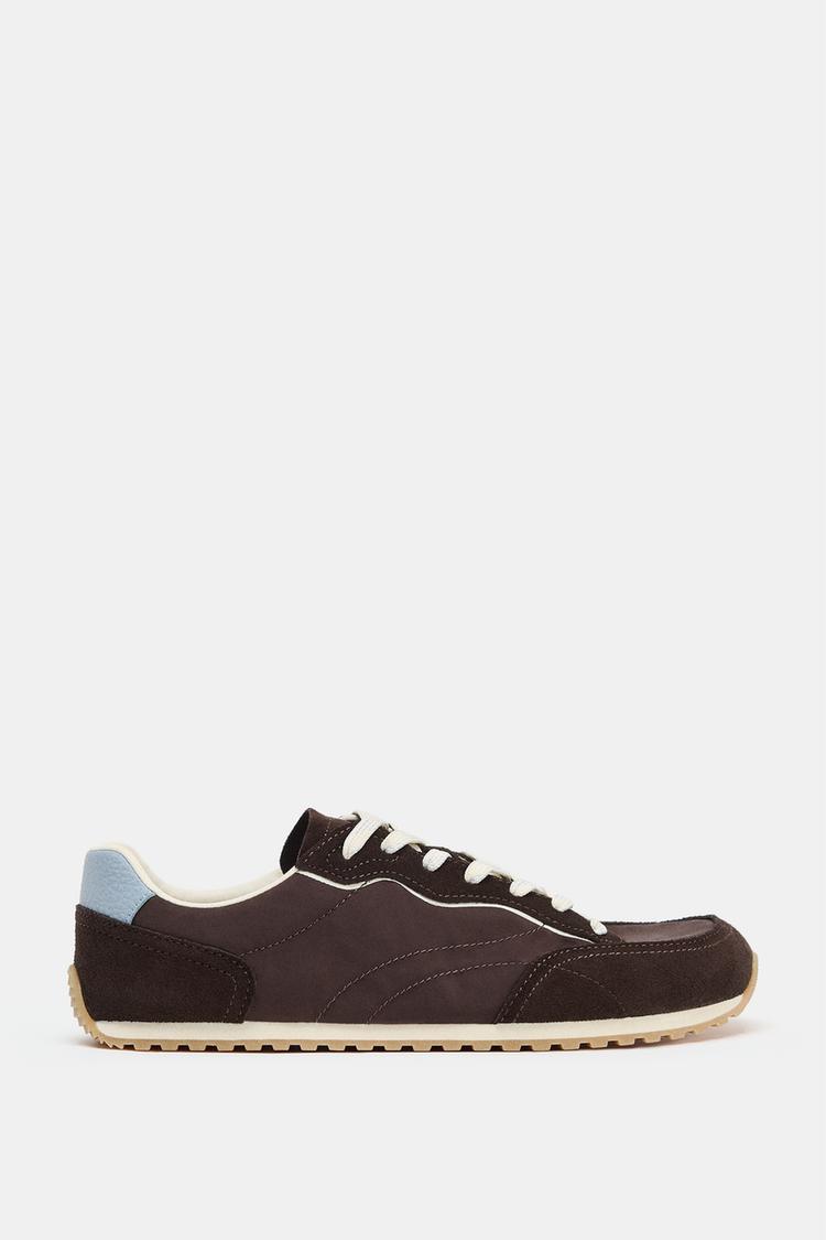 ZARA КРОССОВКИ BAREFOOT ИЗ КОМБИНИРОВАННЫХ МАТЕРИАЛОВ, КОРИЧНЕВЫЙ