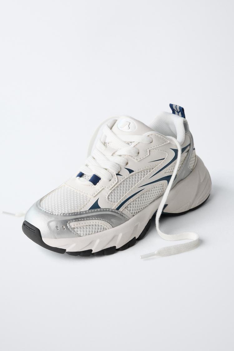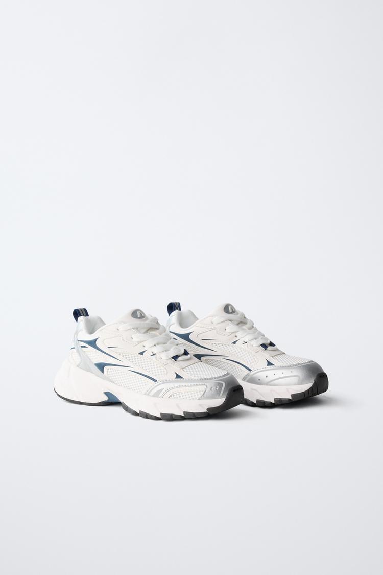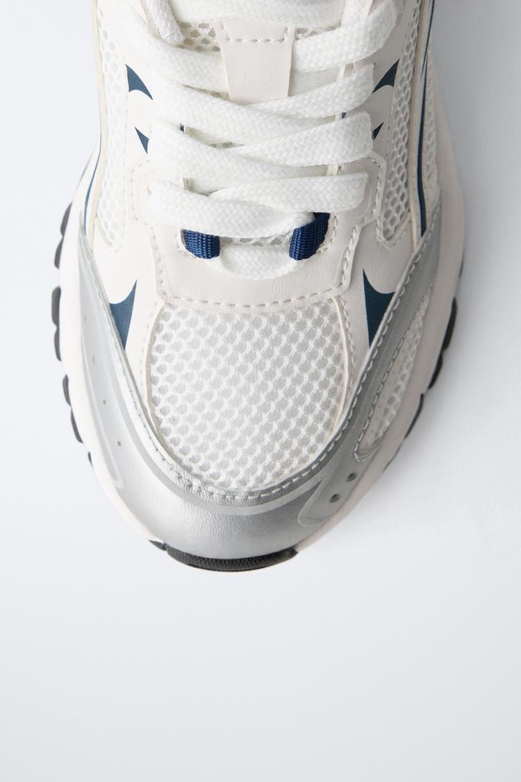 ZARA КРОССОВКИ С ДЕТАЛЯМИ ИЗ СЕТЧАТОЙ ТКАНИ, БЕЛЫЙ