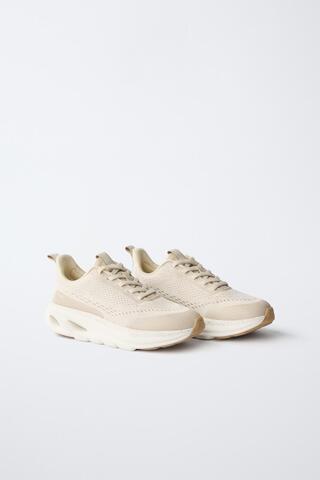 ZARA КРОССОВКИ С ДЕТАЛЯМИ НА ПОДОШВЕ, ЭКРЮ