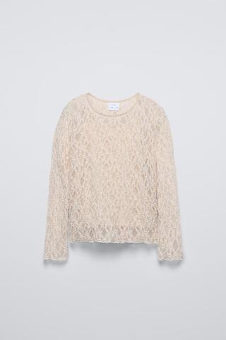 ZARA КРУЖЕВНАЯ ФУТБОЛКА, ЭКРЮ