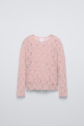 ZARA КРУЖЕВНАЯ ФУТБОЛКА, РОЗОВЫЙ