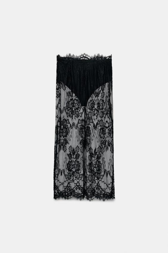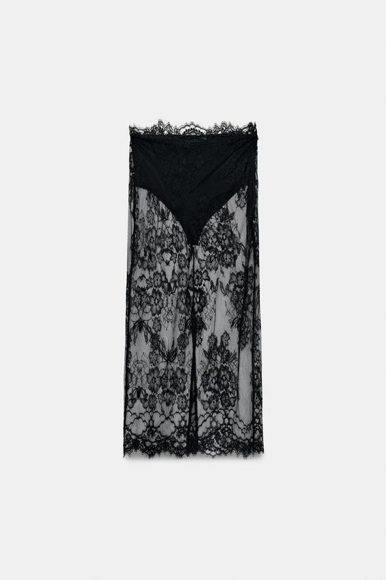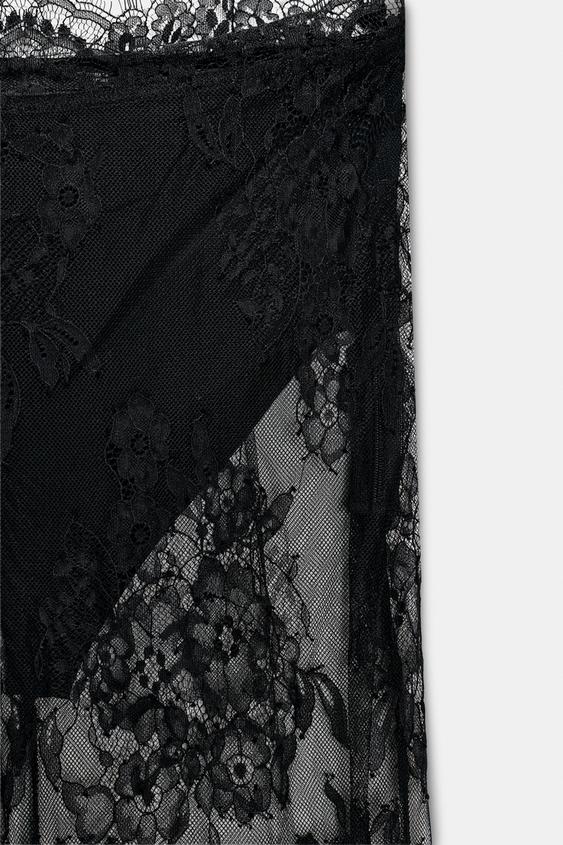 ZARA КРУЖЕВНАЯ ЮБКА МИДИ, ЧЕРНЫЙ