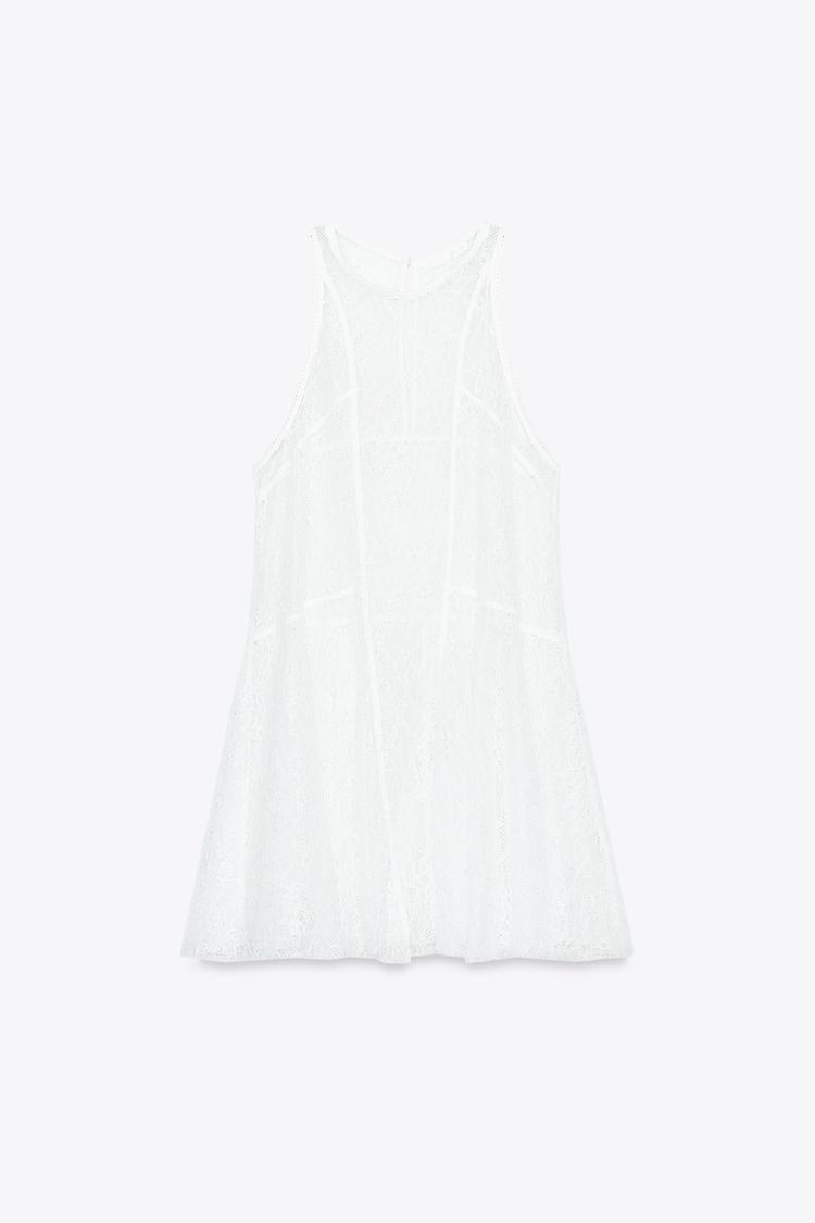 ZARA КРУЖЕВНОЕ ПЛАТЬЕ-ХАЛТЕР, БЕЛЫЙ