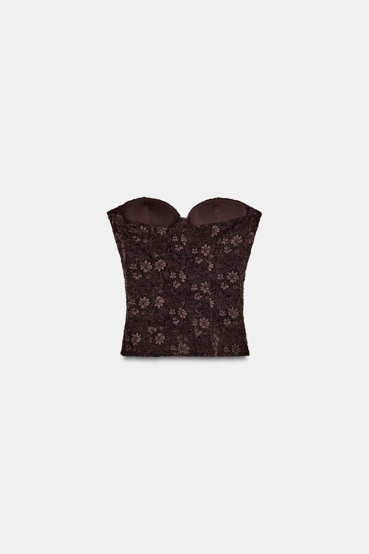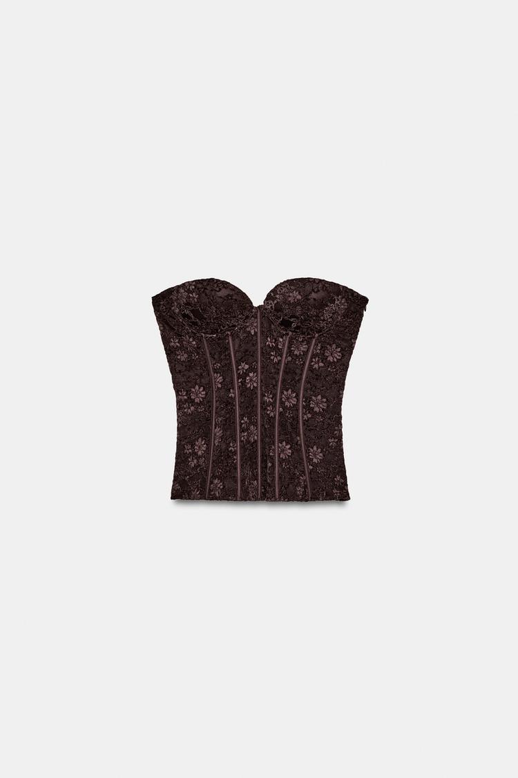 ZARA КРУЖЕВНОЙ КОРСЕТ, КОРИЧНЕВЫЙ