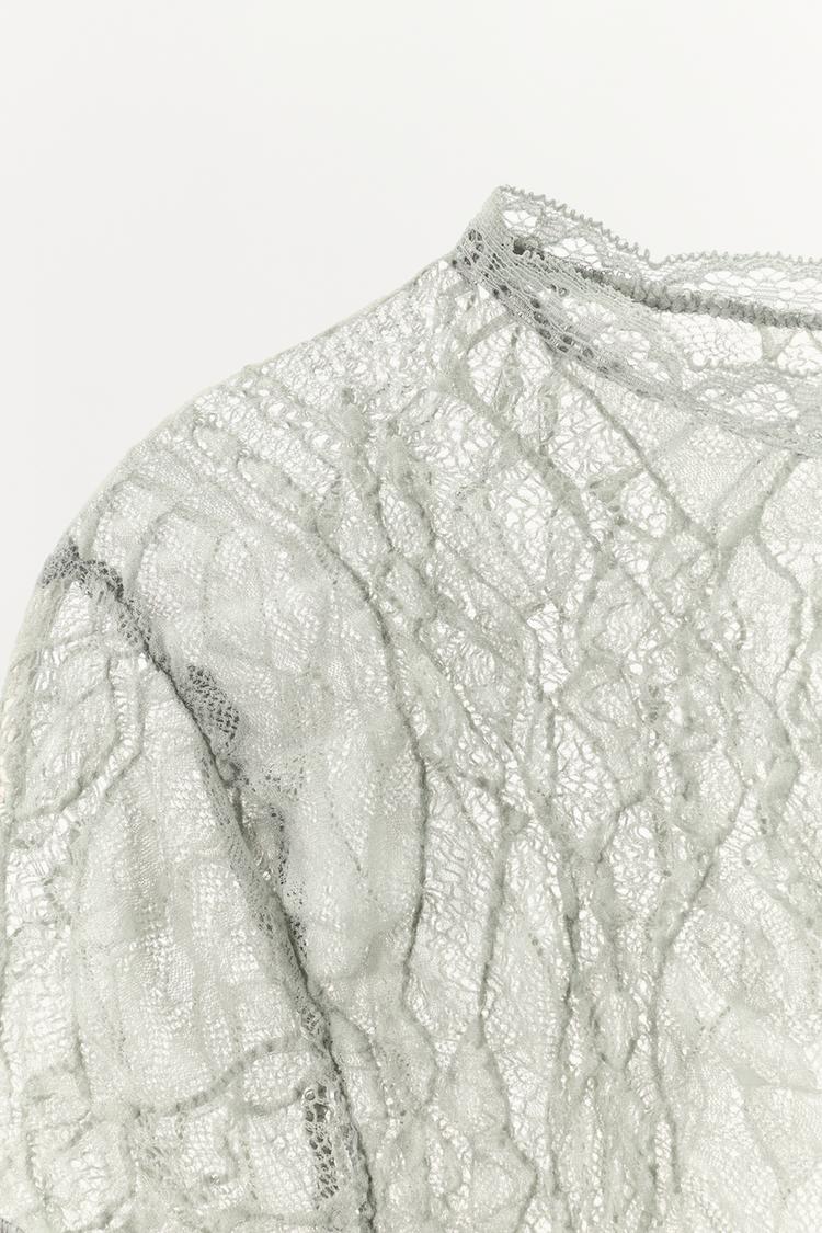 ZARA КРУЖЕВНОЙ КРОП-ТОП, ЗЕЛЕНОВАТЫЙ