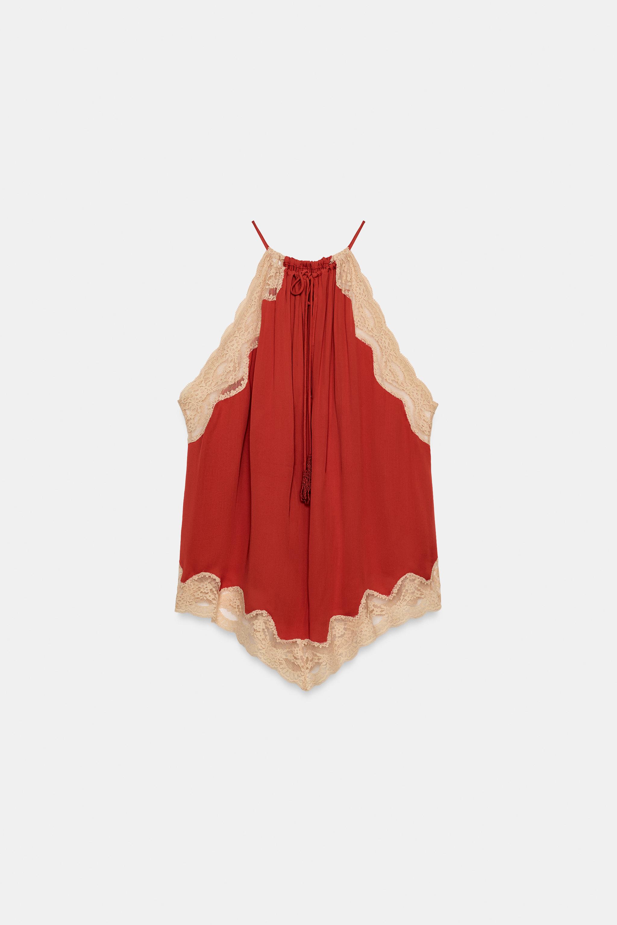 ZARA КРУЖЕВНОЙ ТОП ХАЛТЕР — ZW COLLECTION, ТЕМНЫЙ ЧЕРЕПИЧНЫЙ
