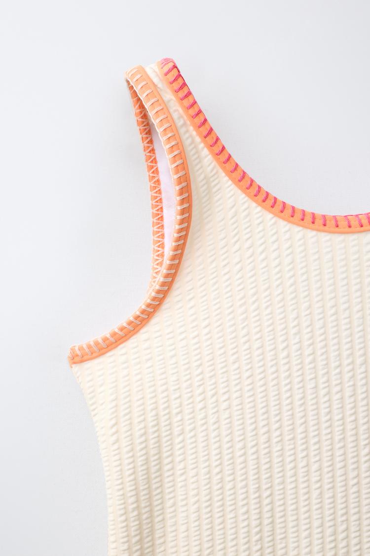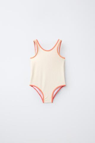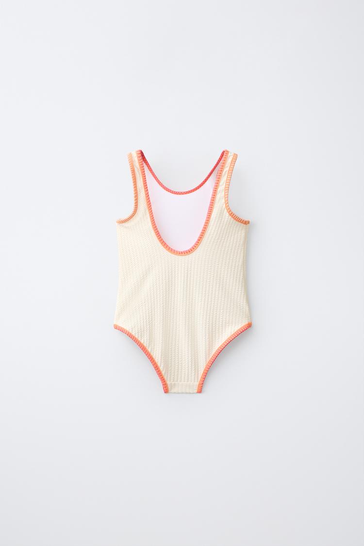 ZARA КУПАЛЬНИК ИЗ ЖАТОЙ ТКАНИ С КОНТРАСТНОЙ ОТДЕЛКОЙ, ЭКРЮ