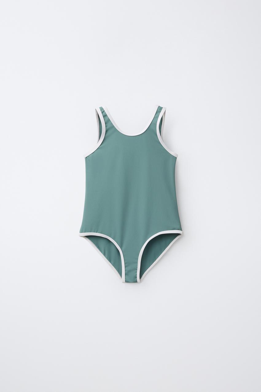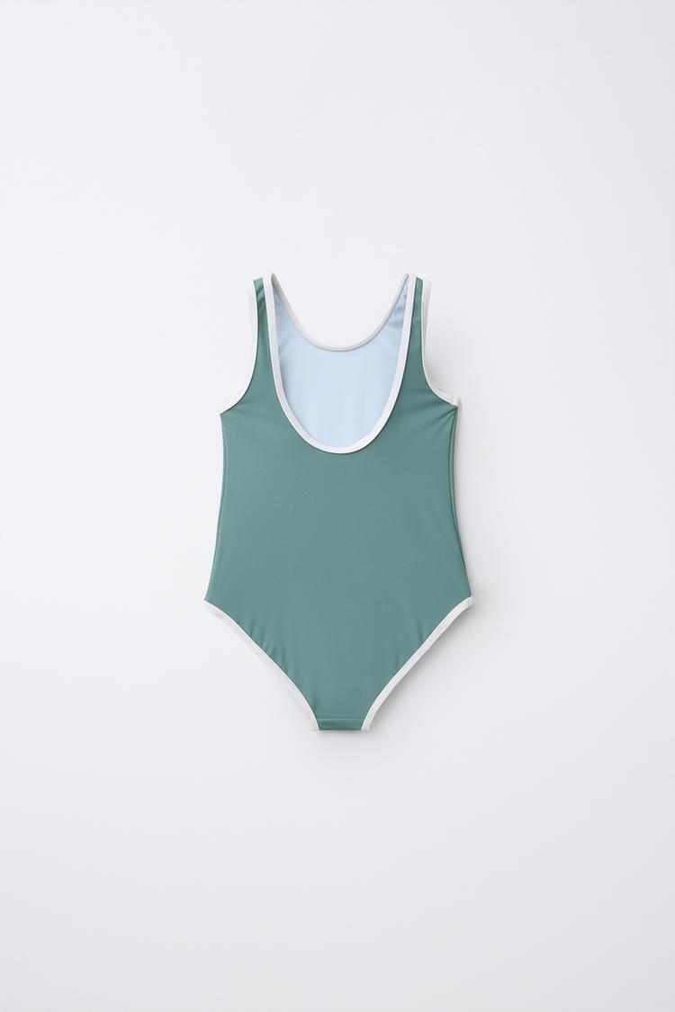 ZARA КУПАЛЬНИК С КОНТРАСТНОЙ ОТДЕЛКОЙ, ЗЕЛЕНОВАТО-СИНИЙ