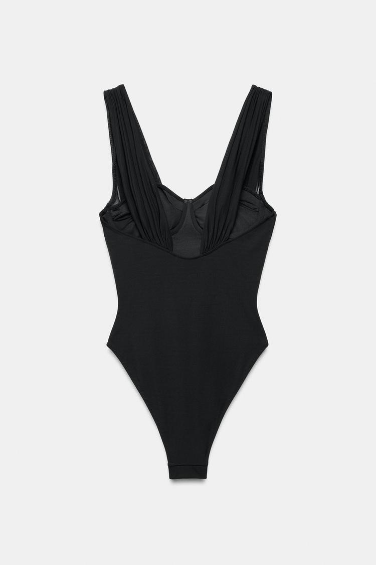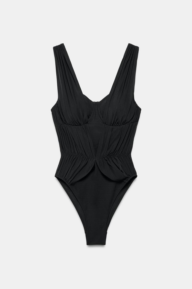 ZARA КУПАЛЬНИК С КОСТОЧКАМИ, ЧЕРНЫЙ