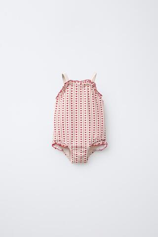 ZARA КУПАЛЬНИК С ПРИНТОМ «СЕРДЦА», КРАСНЫЙ