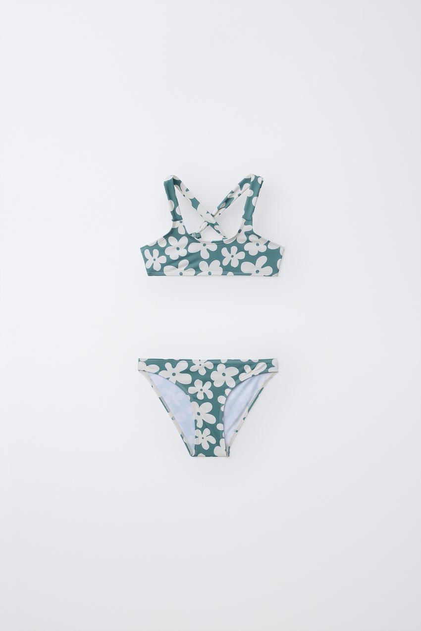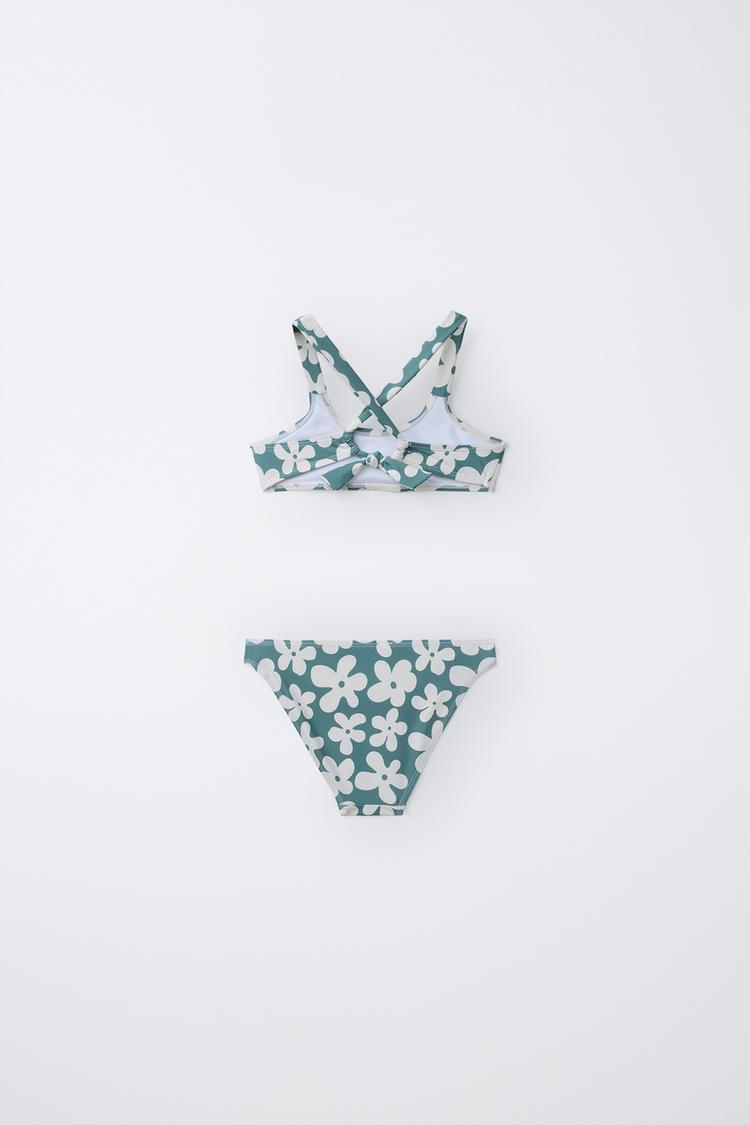 ZARA КУПАЛЬНИК С ЦВЕТОЧНЫМ ПРИНТОМ, ЗЕЛЕНОВАТО-СИНИЙ