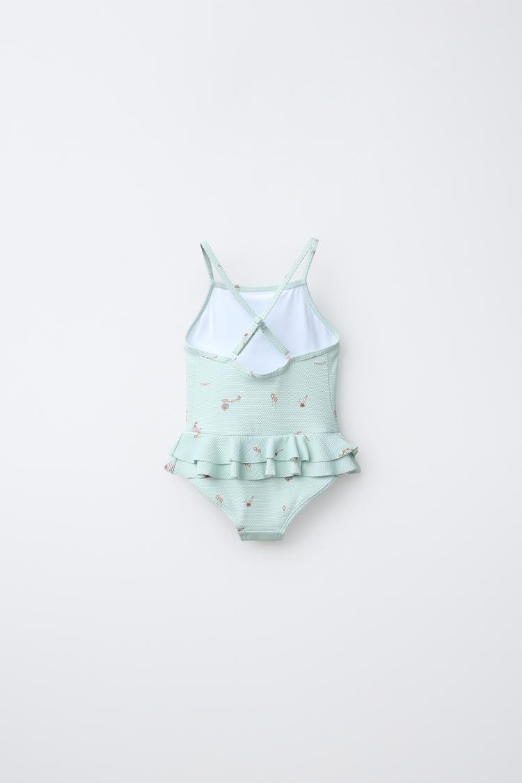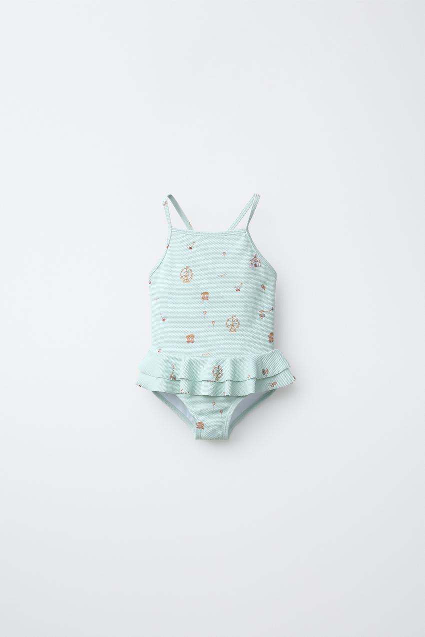 ZARA КУПАЛЬНИК С ВОЛАНАМИ «ЦИРК», ЦВЕТ МОРСКОЙ ВОЛНЫ