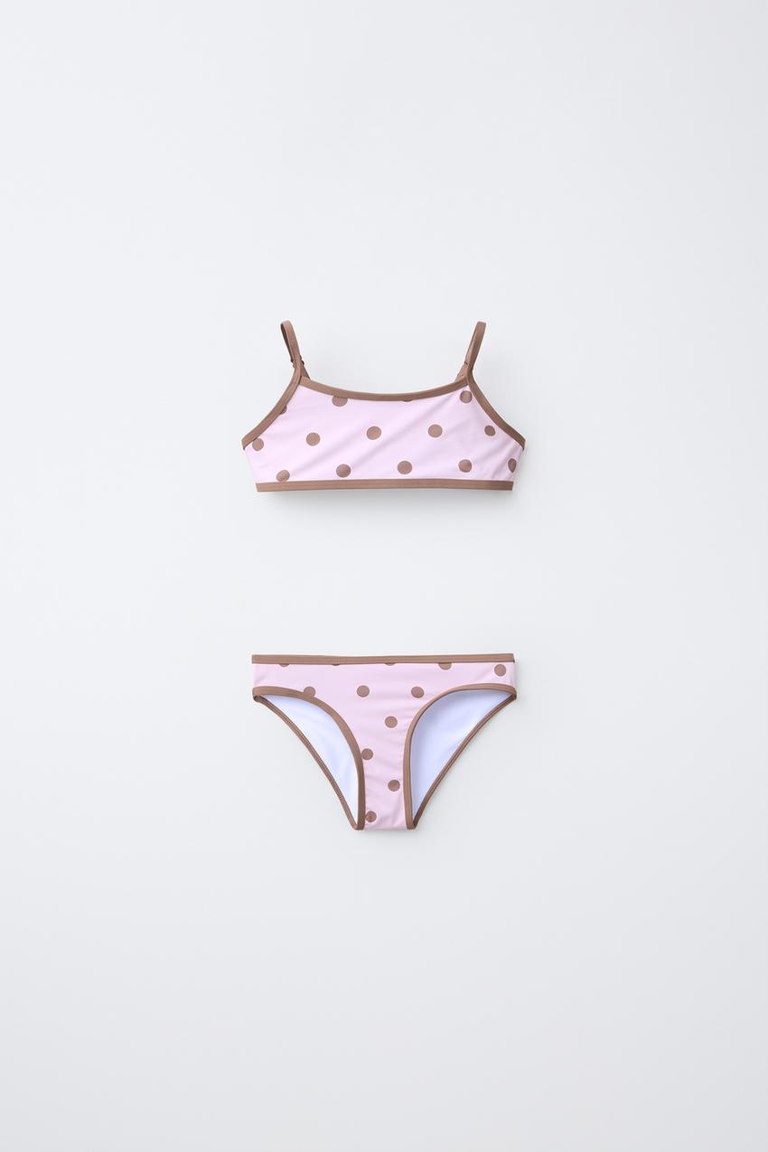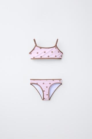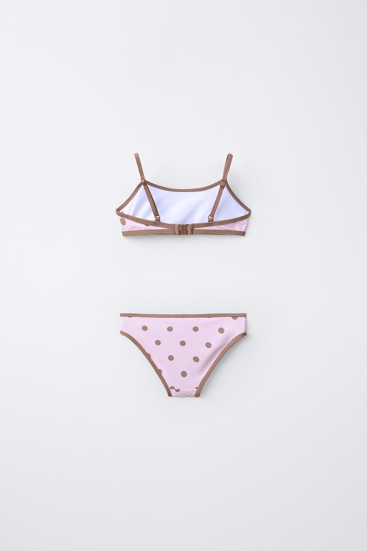 ZARA КУПАЛЬНИК В ГОРОШЕК С КОНТРАСТНЫМИ ДЕТАЛЯМИ, ПУДРОВО-РОЗОВЫЙ