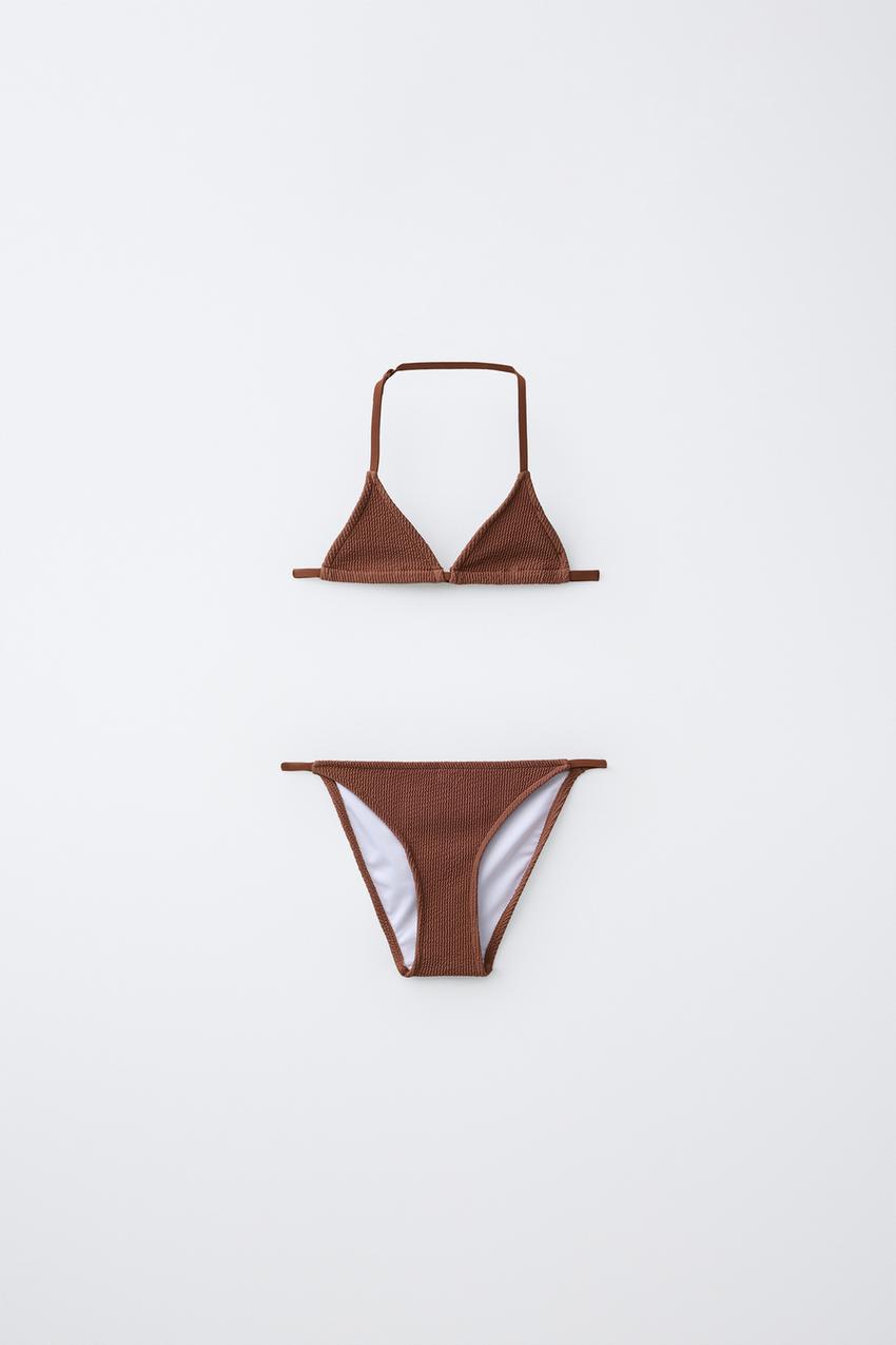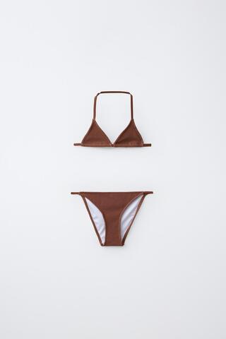 ZARA КУПАЛЬНИК В РУБЧИК, КОРИЧНЕВЫЙ